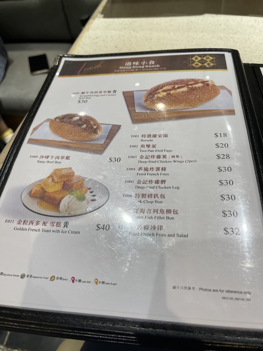 Beverage options include classic Hong Kong-style drinks like iced milk tea and other specialty drinks. The menu accommodates casual dining occasions suitable for breakfast, lunch, or quick light meals. Ordering is typically done via mobile phone, supporting convenience and efficiency.